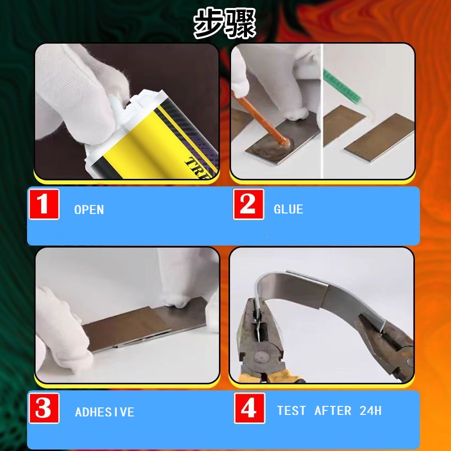 3. Склеивание небольших участков, с хорошей насадкой для смешивания, сожмите клеевой пистолет, клей автоматически смешается, нанесите клей и приклейте примерно на 15-20 минут, чтобы получить первоначальную прочность.